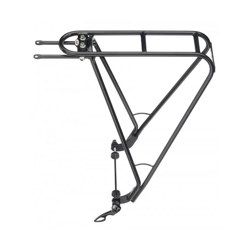 Porte-bagages conçu pour les vélos équipés de freins à disque. Peut aussi être monté sur un cadre non équipé d’oeillets de fixation.