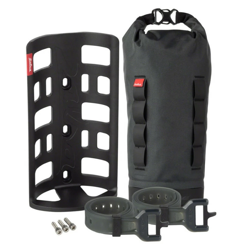 Support de type porte-bidon géant pour objets cylindriques de faible poids comme matelas de sol, sacs de couchage, (grosses) bouteilles thermos, tarp, réchauds et cartouches, etc, etc…